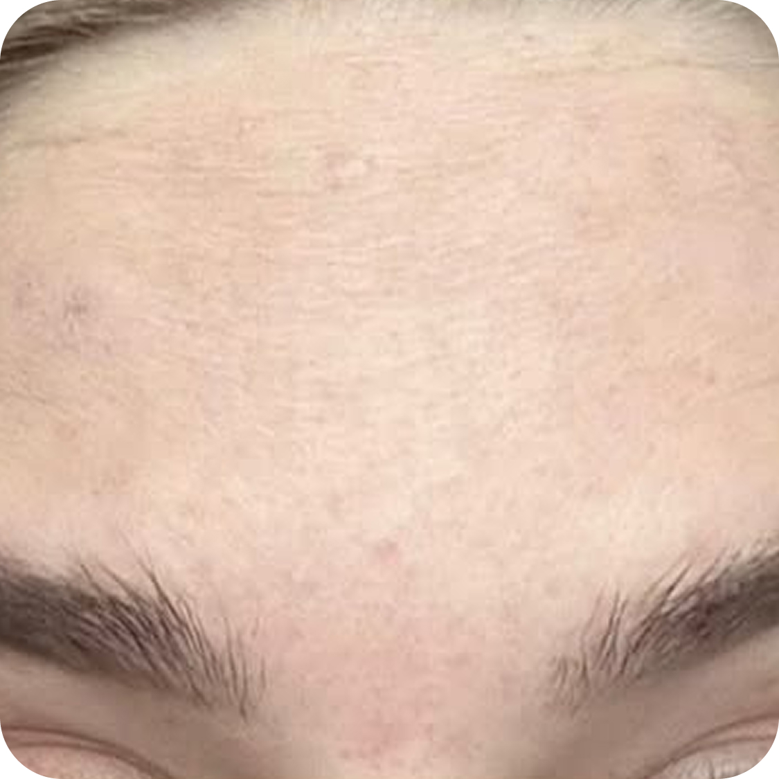 Мышцы лба расслаблены, морщины стали менее заметными, рельеф кожи выровнен, а выражение лица выглядит более спокойным и ухоженным. При этом сохраняется естественная мужская мимика без эффекта «замороженности».