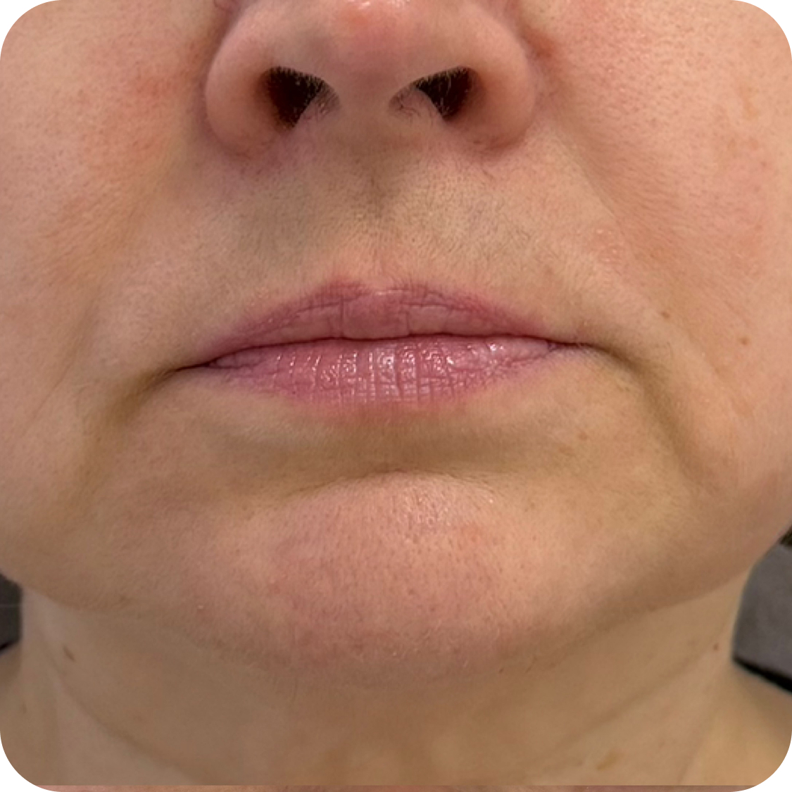 Губы стали более гладкими и увлажнёнными, контур восстановлен, мелкие морщинки скорректированы, а форма выглядит аккуратно и естественно. Внешний вид стал более свежим и ухоженным без избыточного объёма.