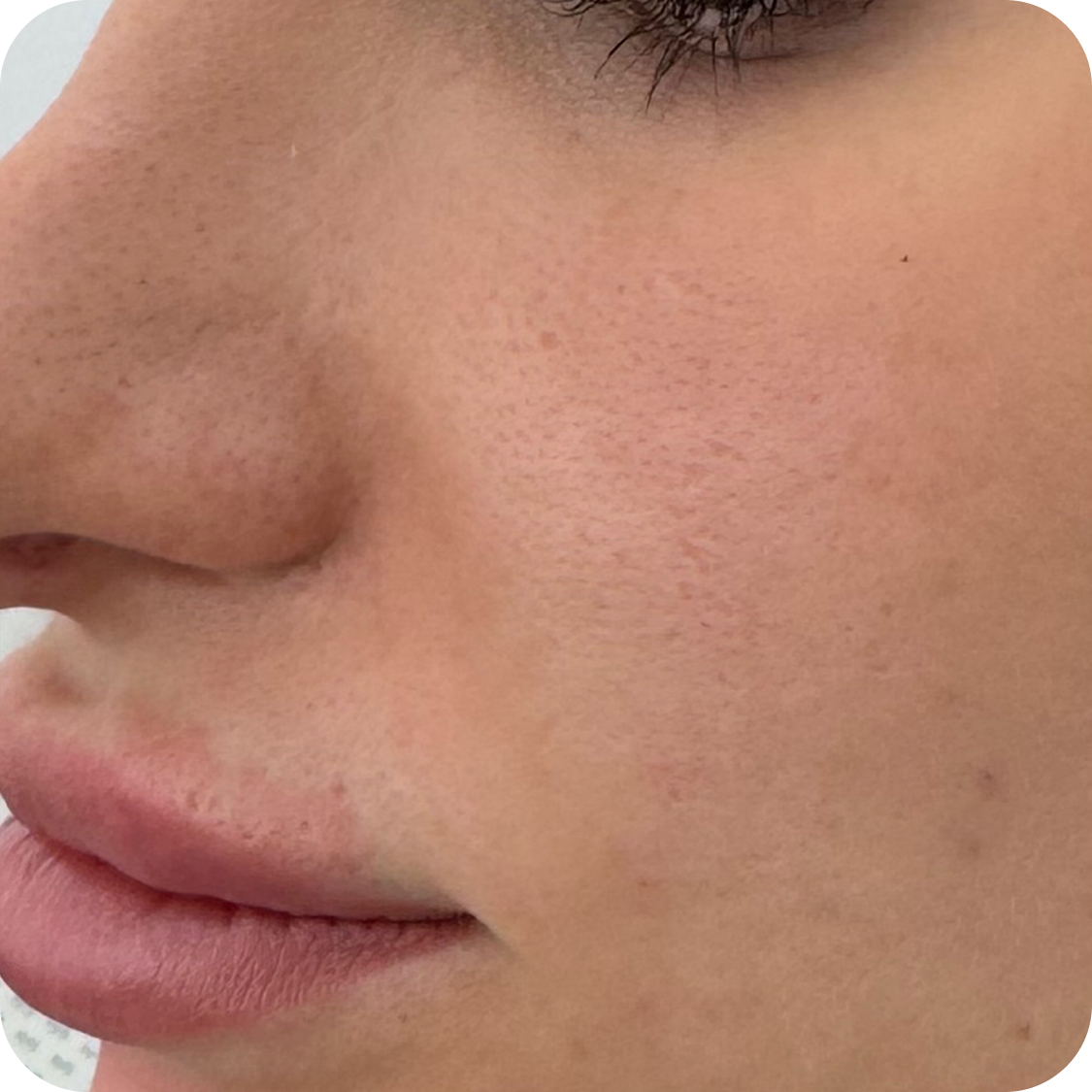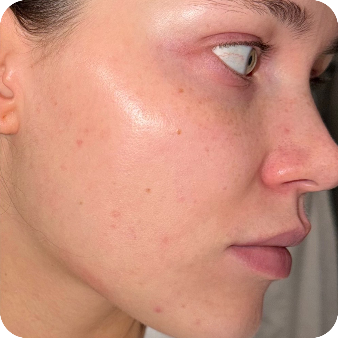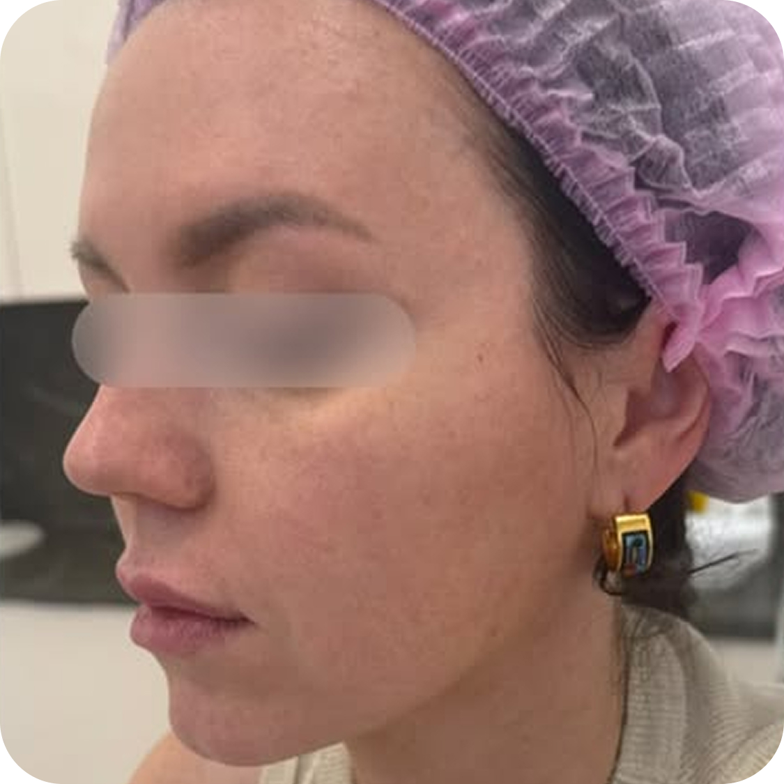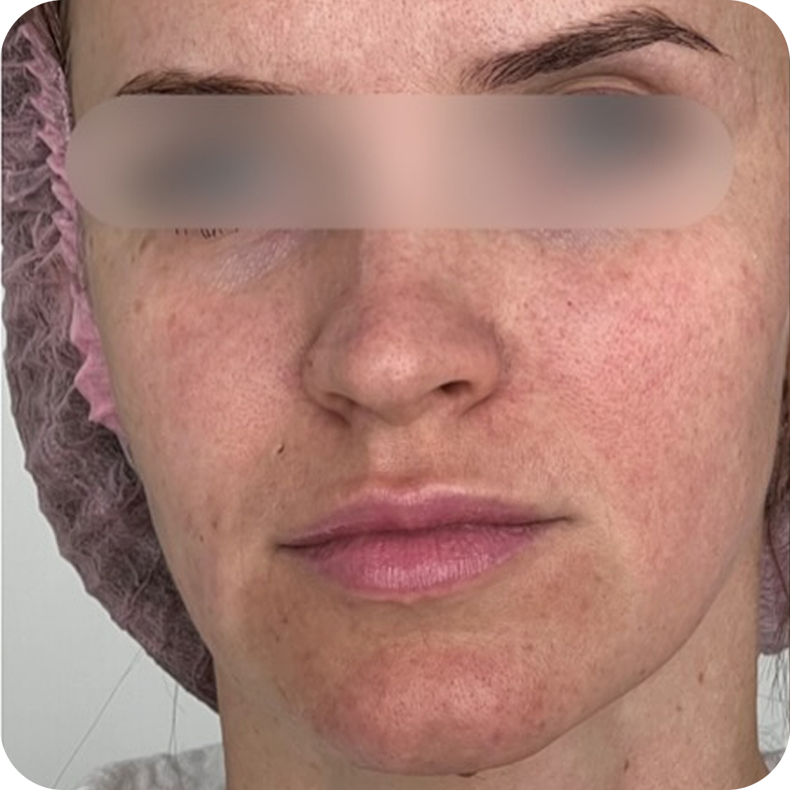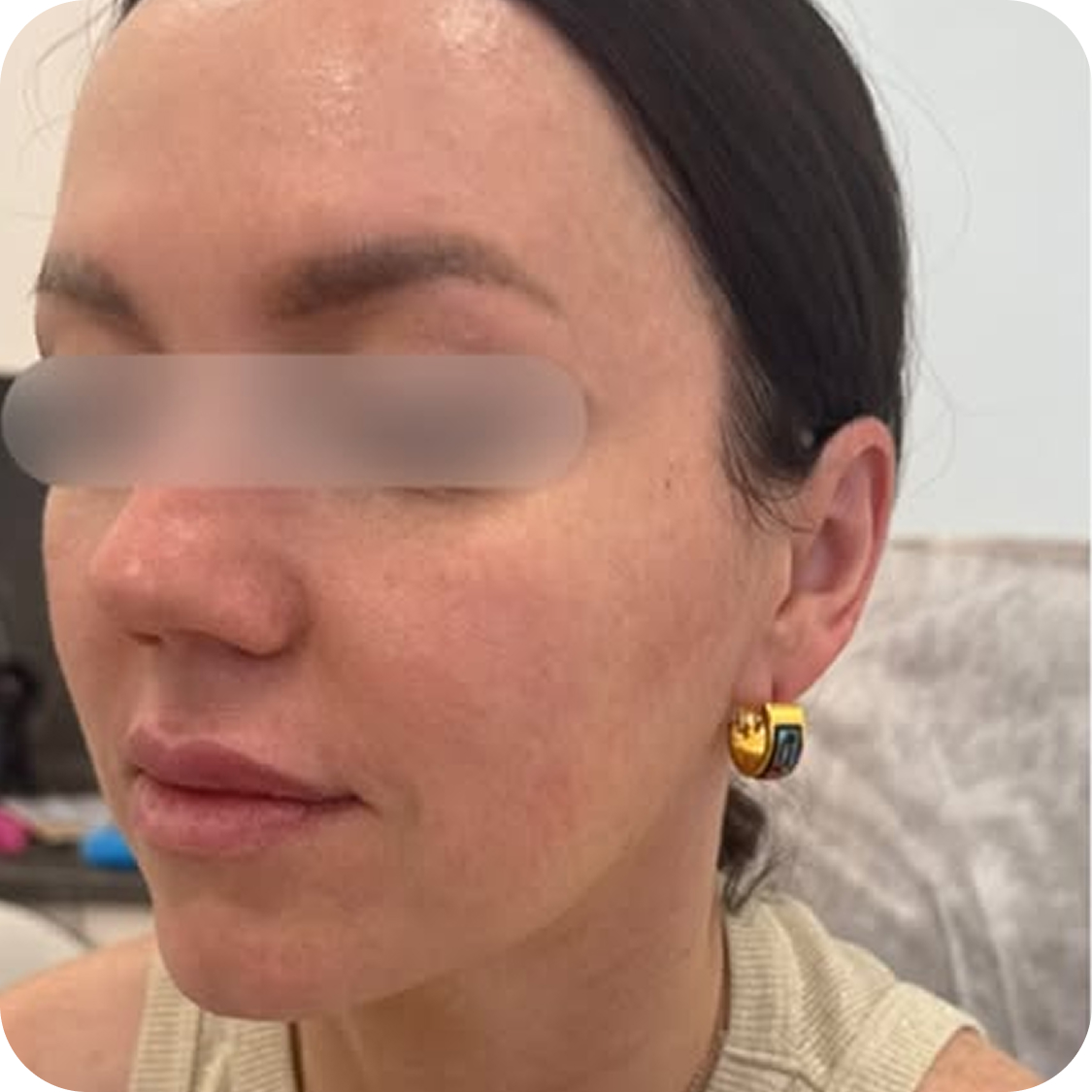 Кожа стала более плотной и эластичной, заметно подтянулась, рельеф выровнен, морщины сглажены, а контуры лица выглядят более чёткими и собранными. Внешний вид стал более свежим, ухоженным и визуально омоложённым за счёт глубокой стимуляции коллагена и активного обновления кожи.