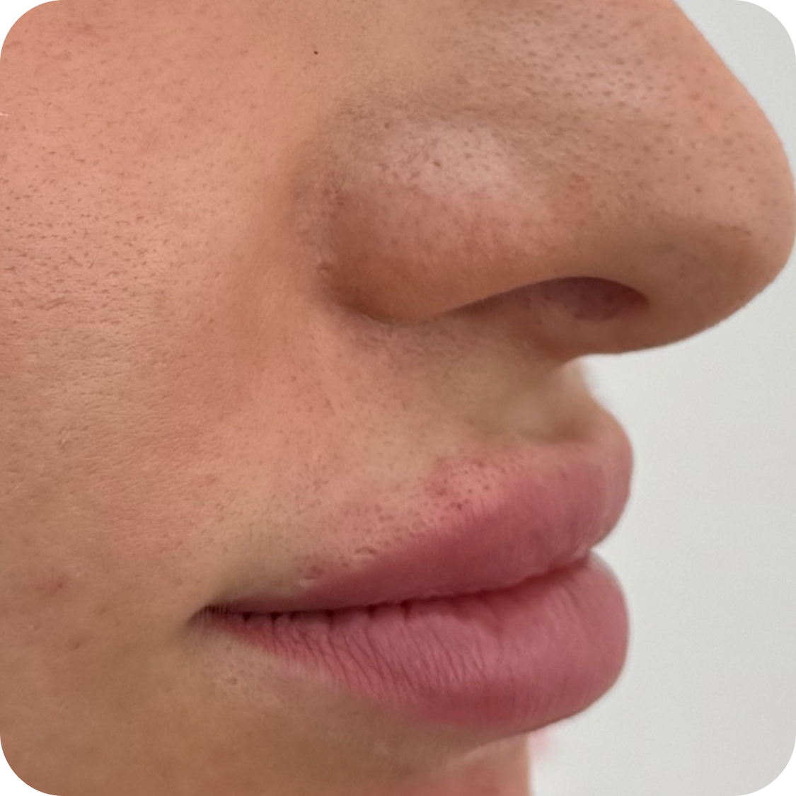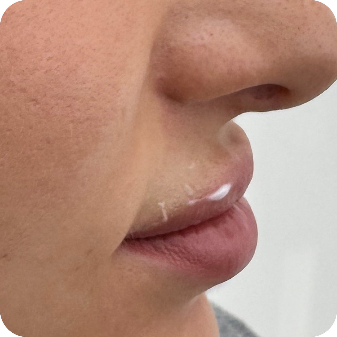 Губы становятся более увлажнёнными и мягкими, восстанавливается естественный объём и гладкость, контур становится чётче, а мелкие морщинки разглаживаются. Результат выглядит максимально естественно, возвращая губам свежесть и ухоженный вид без эффекта избыточного увеличения.