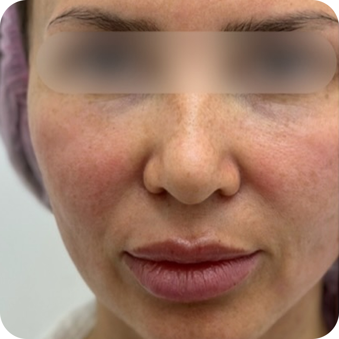Форма и баланс восстановлены, губы стали более объёмными и чёткими, асимметрия скорректирована, подчеркнута естественная линия. Результат выглядит гармонично и аккуратно, усиливая привлекательность без ощущения перегруженности.