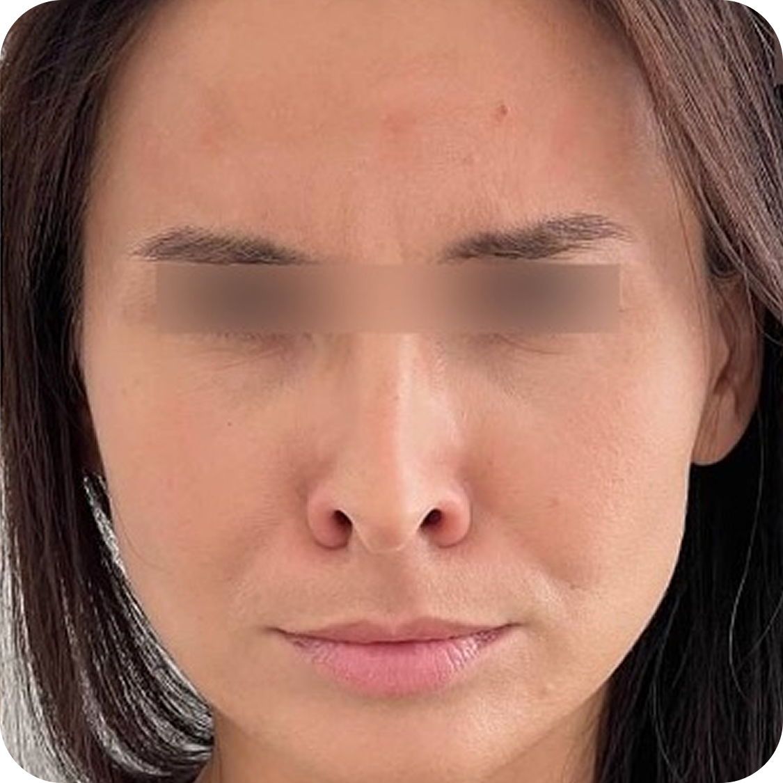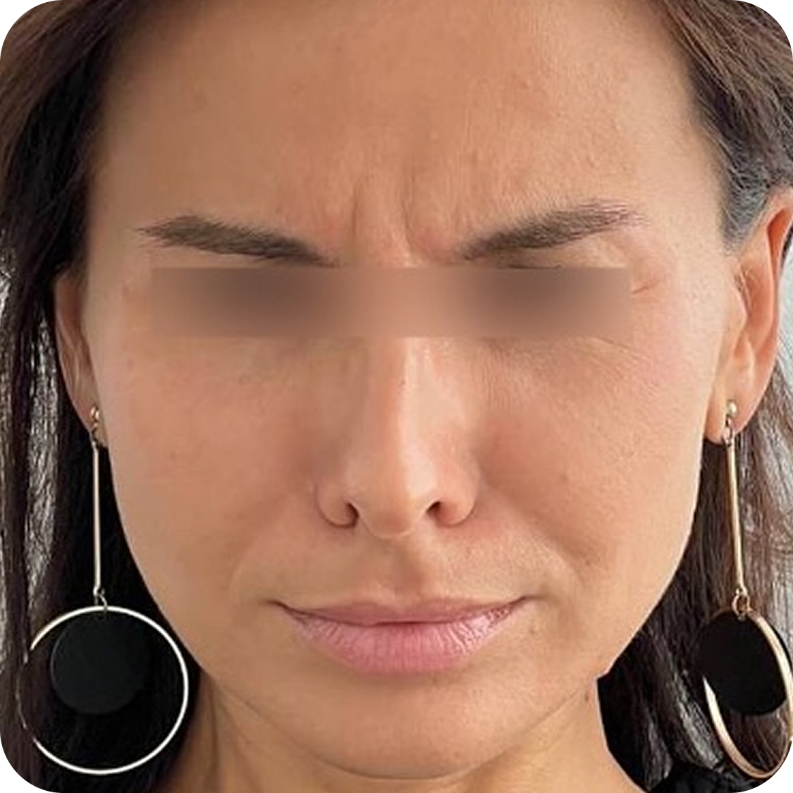 После процедуры мышцы расслаблены, морщины стали менее выраженными, кожа выглядит более гладкой и ровной, а взгляд — более открытым и свежим. Результат сохраняет естественную мимику, придавая лицу мягкость и ухоженность.